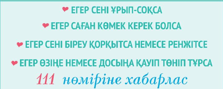Сенім телефоны 111 кез келген нөмерден хабарлас!